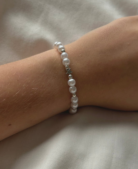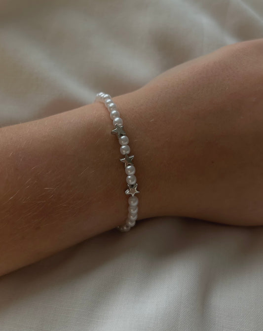pearl and silver star bracelet 🤍🪩