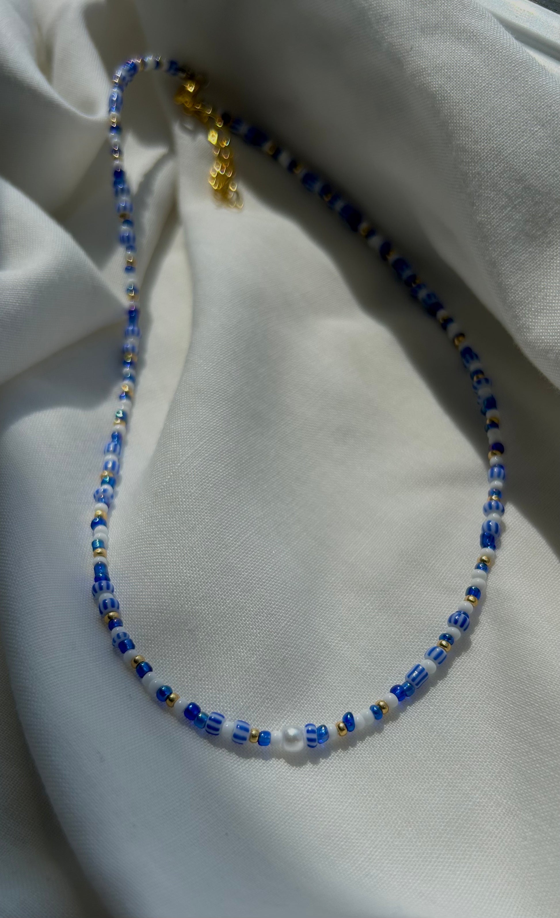 Greece inspired beaded necklace with blue, white and gold beads 🇬🇷