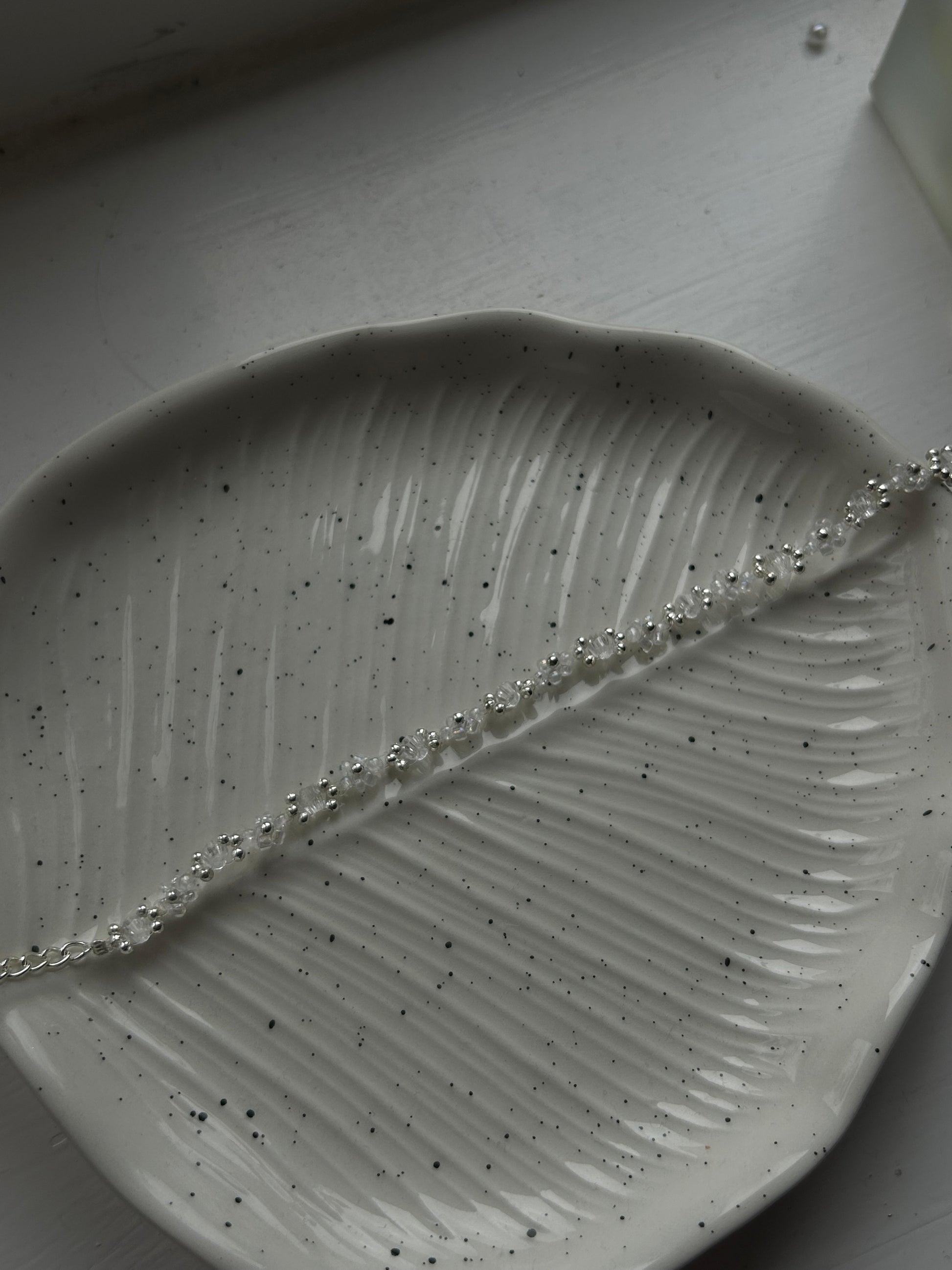 Expertly crafted with individually threaded silver and white beads, this flower bracelet is a stunning addition to any outfit 🤍🪩